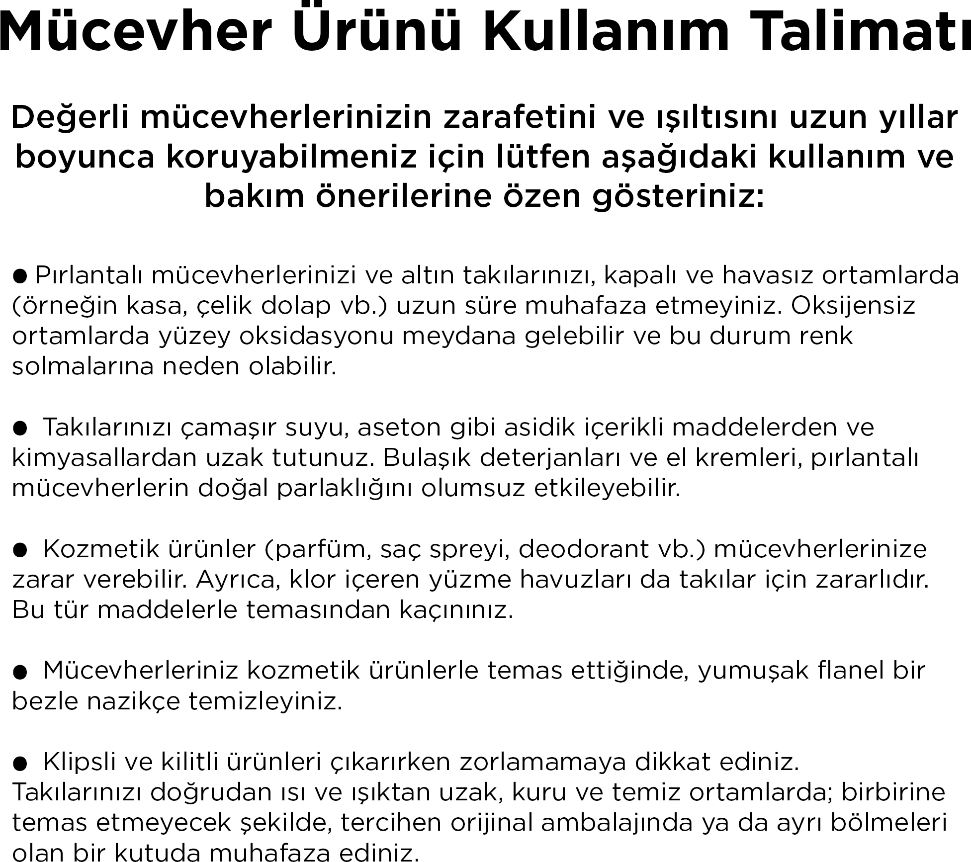 Kullanım Talimatları/Uyarılar: Kullanım Uyarıları